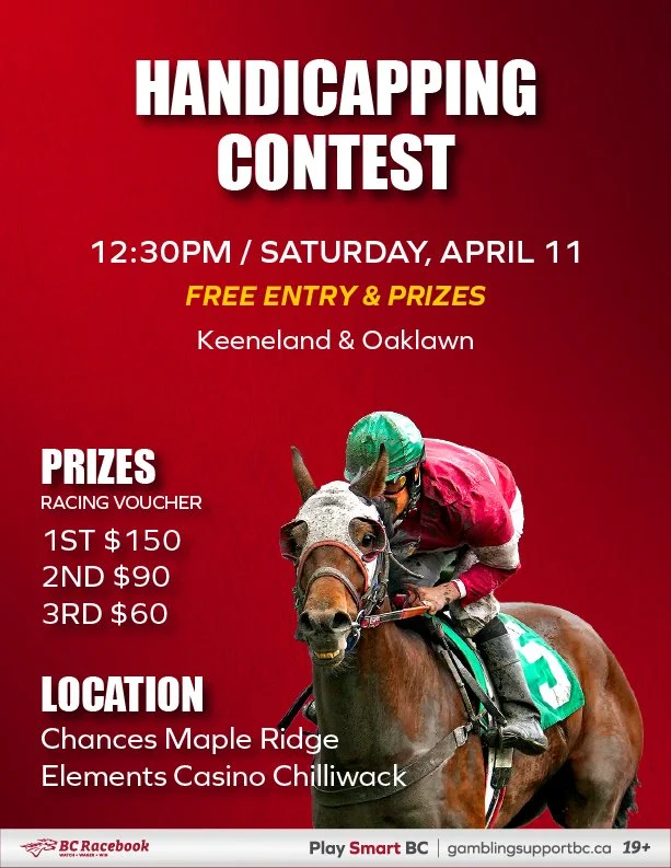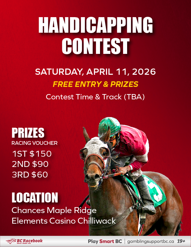 Handicapping Contest (April 11) - Chances Maple Ridge & Elements Casino Chilliwack Matthew RuhlmanApril 2, 2026 Facebook0 Twitter Pinterest0 0 Likes